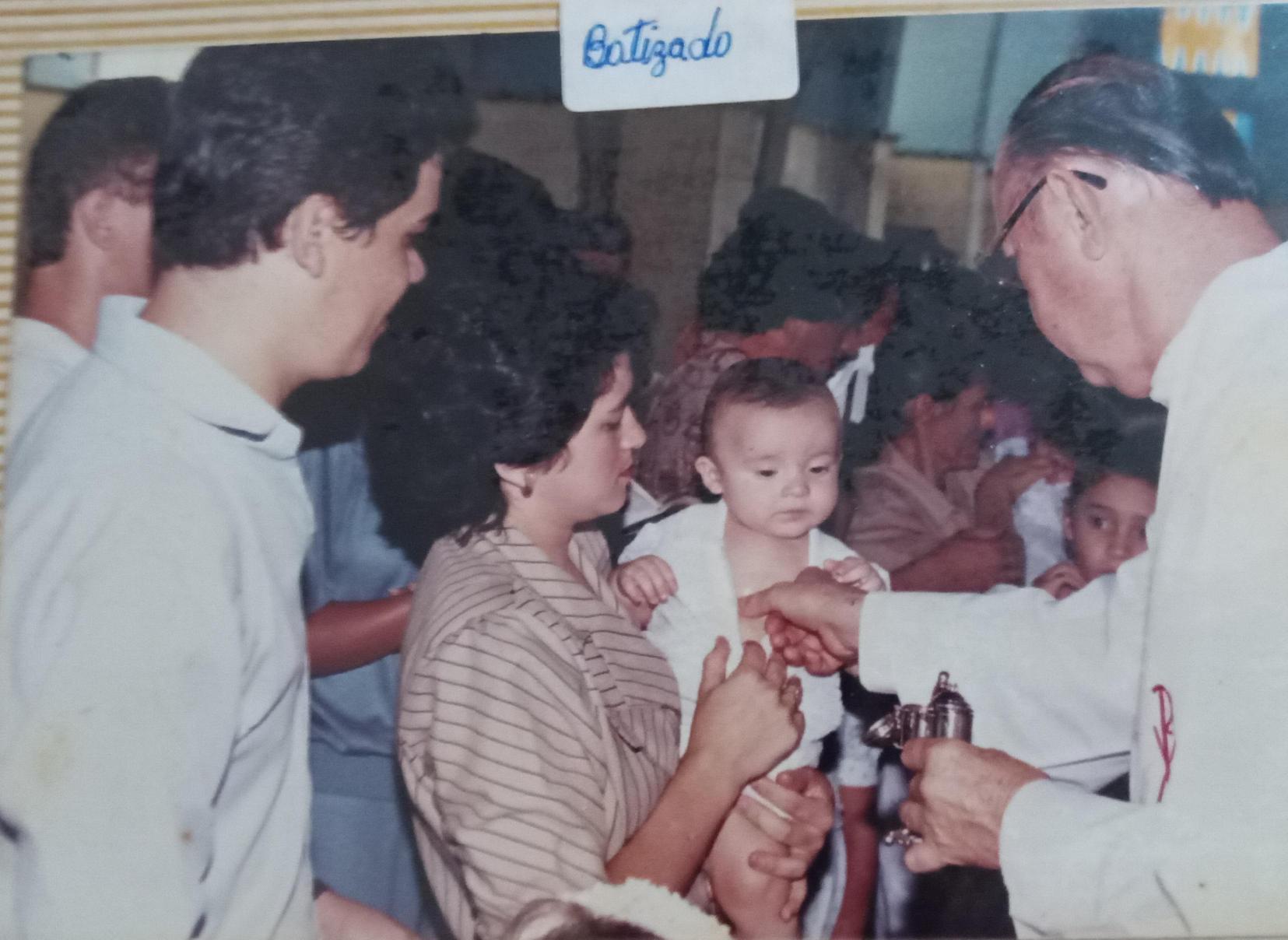 Foto no dia do meu batismo na Igreja Católica Apostolica Romana. Eu estava com meus Pais nessa foto e fui batizado pelo Padre Amorim na Igreja Nossa Senhora de Fátima, em Fortaleza, Ceará - Brasil. |