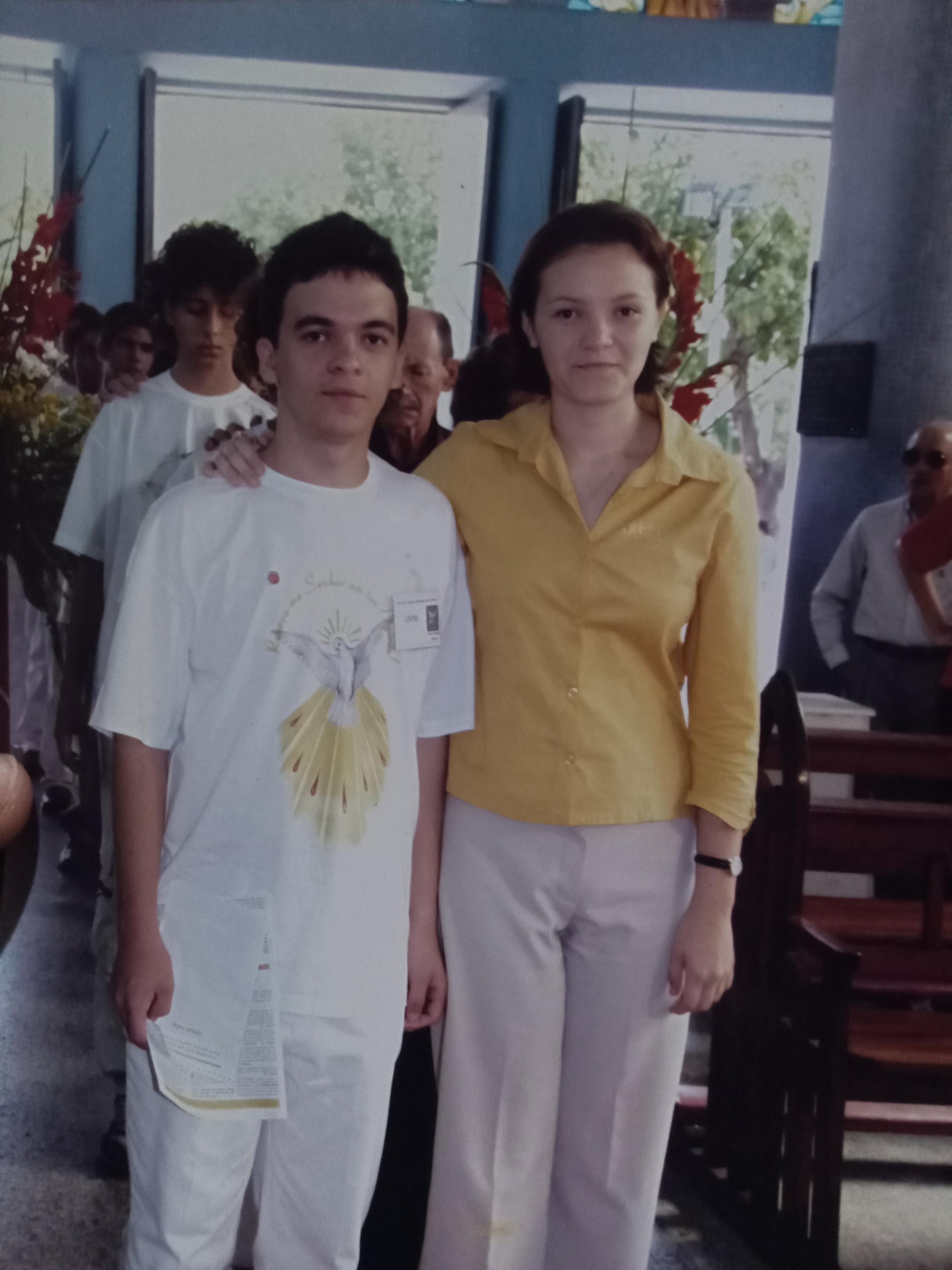 Foto da minha Crisma na Igreja Nossa Senhora de Fátima, em Fortaleza, Ceará - Brasil. É na Crisma onde recebemos os dons do Espírito Santo que ele escolhe para nós. A minha Irmã foi minha Madrinha de Crisma e o Padre Amorim foi quem me Crismou. |